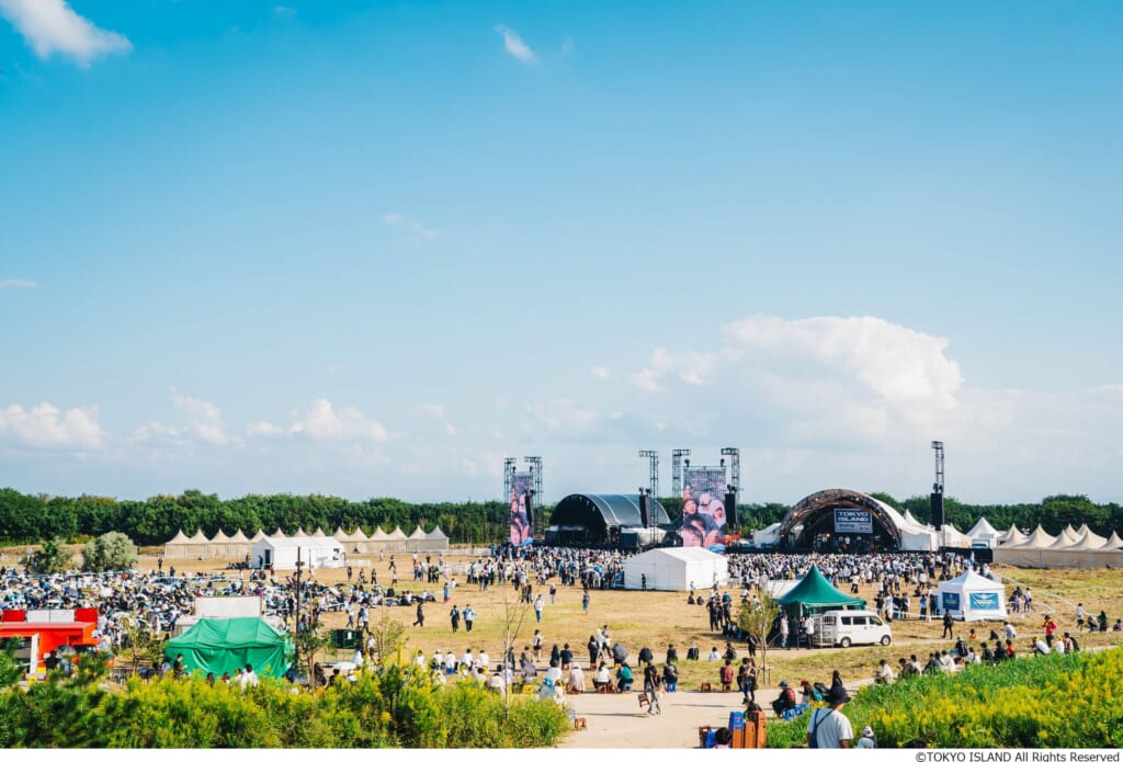 同フェスは、今年3月にオープンしたばかりの東京・海の森公園で、音楽、キャンプ、ワークショップ、アクティビティ、花火などが楽しめる音楽フェス。東京ドーム13個分の広さを誇る会場は、一歩足を踏み入れると東京都内とは思えない自然と、対岸には東京のビル群や夜景、空へ飛び立つジャンボジェット機の姿など、自然と都会が共存した非日常空間となっている。