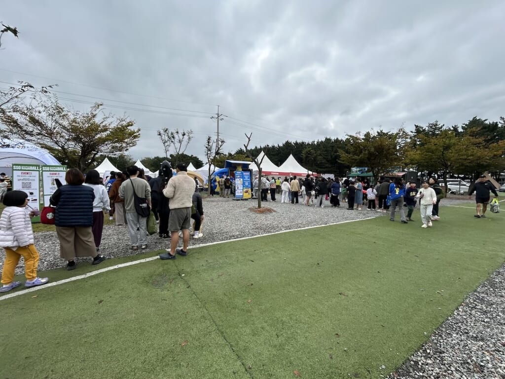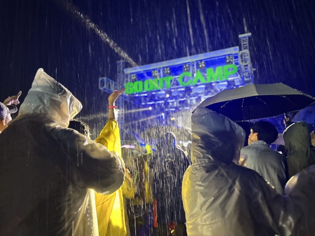 DJ OZMAによる「アゲアゲEVERY騎士」はご存じでしょうか? あの曲、実は韓国アーティストによる原曲があるんです。もちろん韓国でも大ヒットし、今も人気なのですが、そのアーティスト「DJ DOC」が金曜の夜にメインステージに登場。雨の中でもとんでもない数の人がステージ前に集まり盛り上がりました。土曜もDJ LEXというスクラッチDJを中心にイカゲーム2に出ていたヤン・ドングン=YDGらが出演。土曜のお昼には素人のど自慢大会(カラオケ大会)をメインステージで豪華に開催。