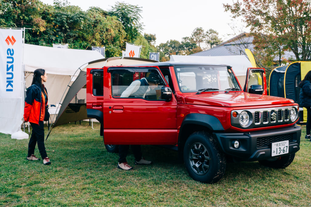 クルマメーカーの出展もあり、スズキはジムニーノマド、トヨタは車中泊仕様のハイエース、MINIはカントリーマンのEVモデルを展示。車内を覗いたり、興味深そうに説明を聞く人も見受けられました。
