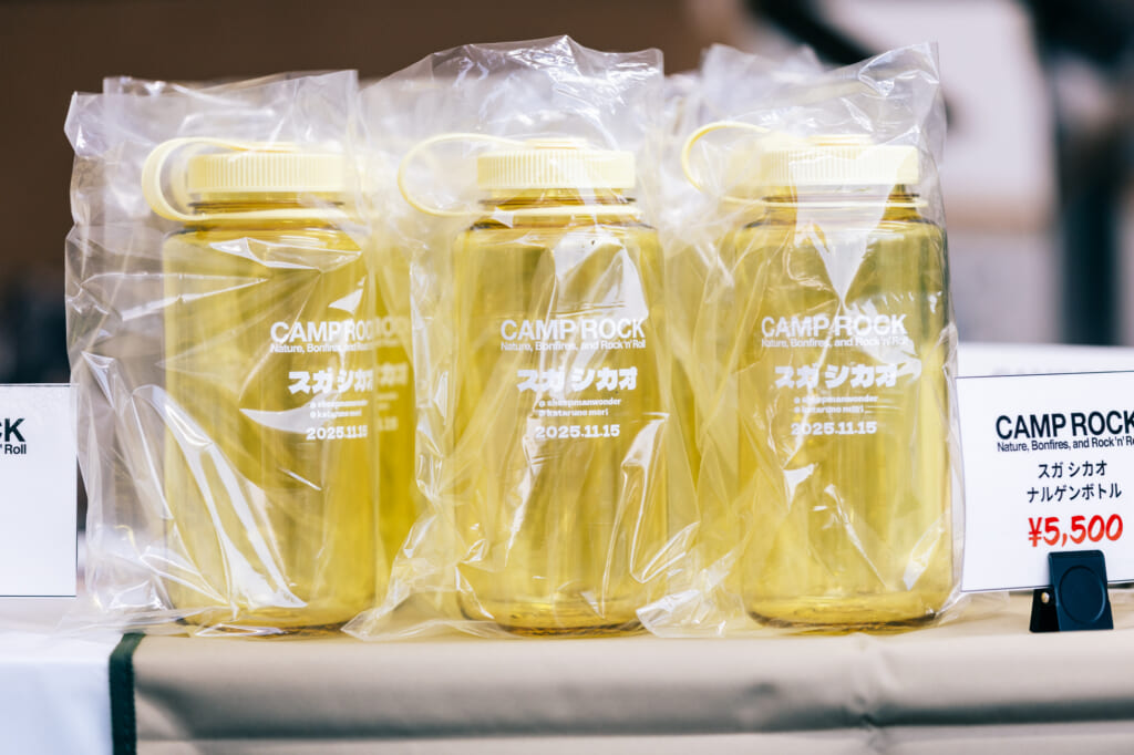 グランドシート、ナルゲンボトル、キャンプ用プレートにアーティスト名が記された特別感溢れるギアは、非常に人気を集めており、会場で買ってすぐ使っている人も多く見受けられました。