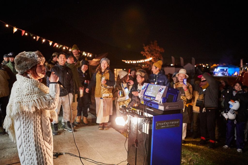 冬の野外ステージで熱唱!真冬のカラオケ大会。