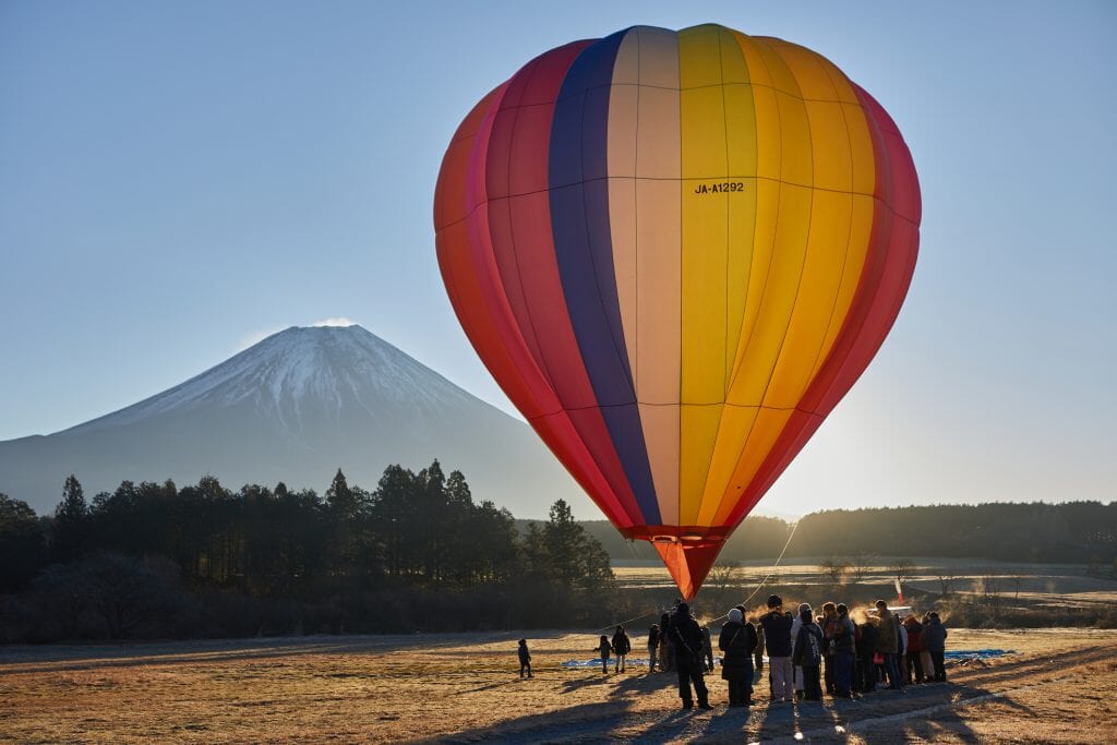会場では、気球体験も開催。ふもとっぱらの広大な景色を上空から楽しめる特別なアクティビティとなっています。天候次第では富士山や朝焼けの絶景が見られることも。冬の冷たい空気の中で、空へ浮かび上がる感覚は唯一無二の体験です!