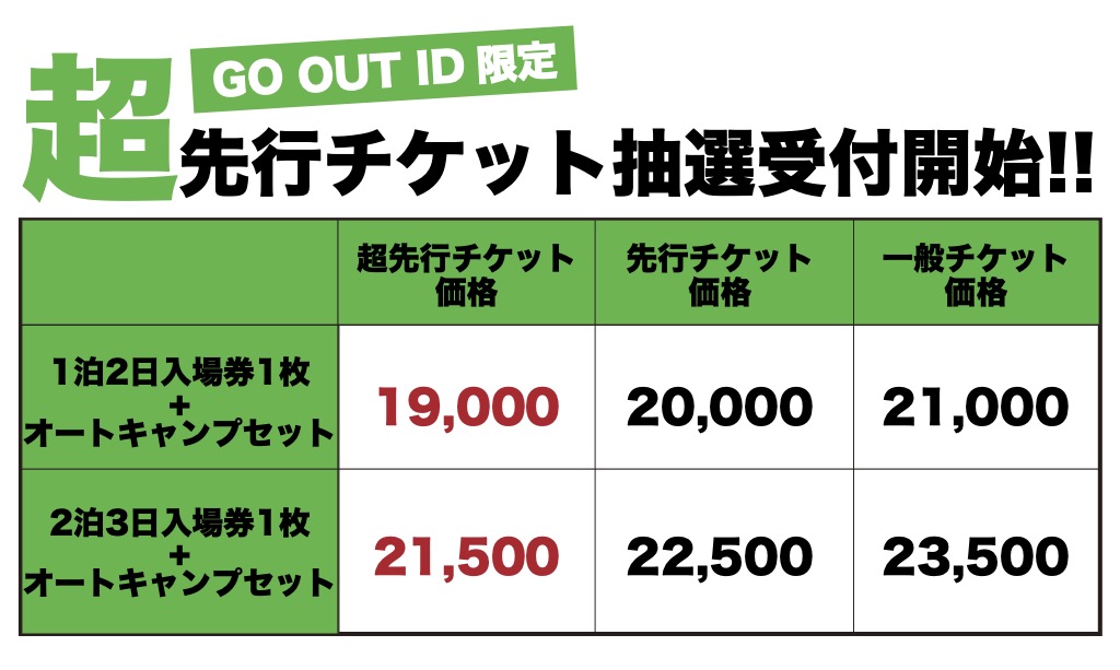 超先行チケットは、一般チケットよりも2000円お得! この機会にGO OUT IDへご登録のうえ、超先行チケット抽選にご応募ください!!