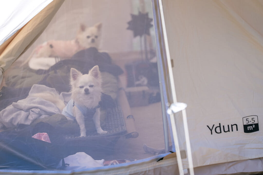 お座敷スタイルは荷物が多くなってしまいがちではあるものの、GOJはオートキャンプチケットならクルマをテントに横付けできるので、重装備でもラクチンだ。