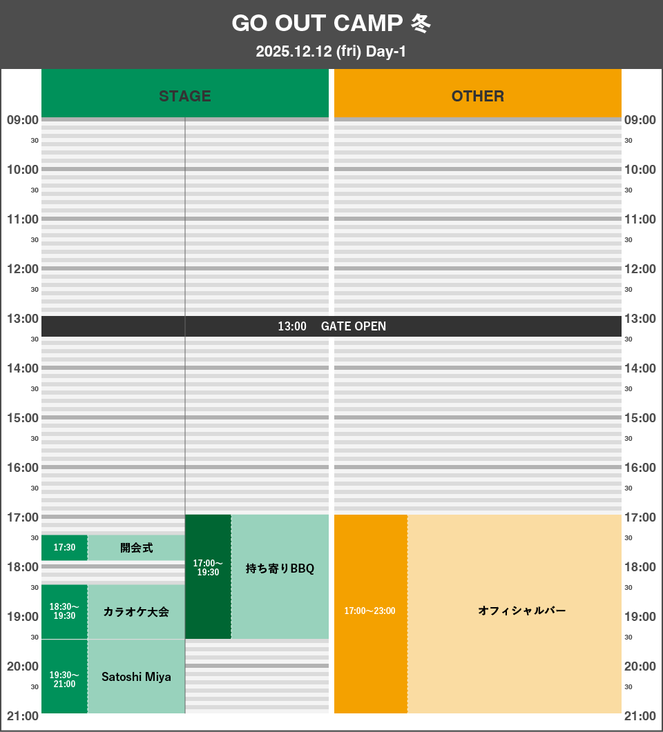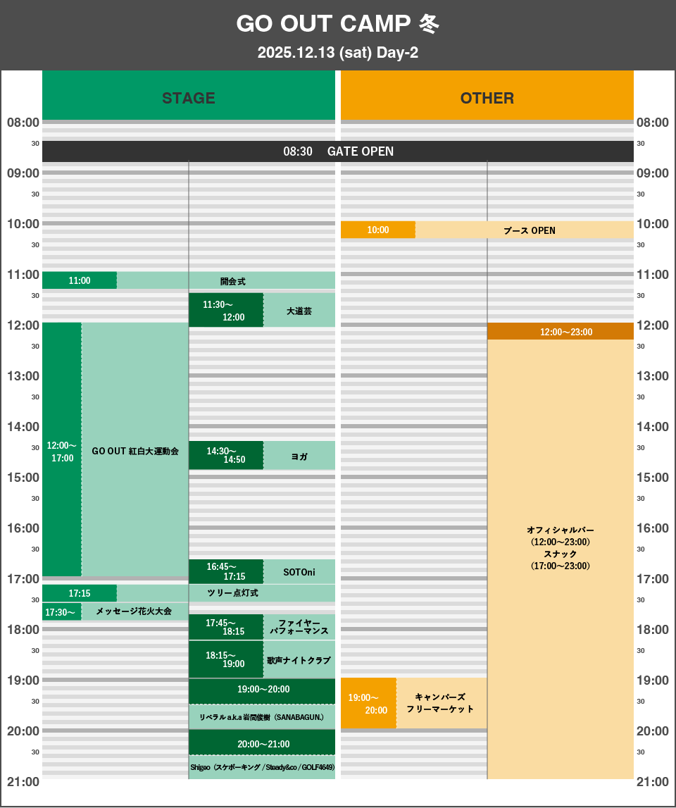 「GO OUT CAMP 冬 2025」のタイムテーブルとマップをチェックして、イベントをフルに楽しもう!