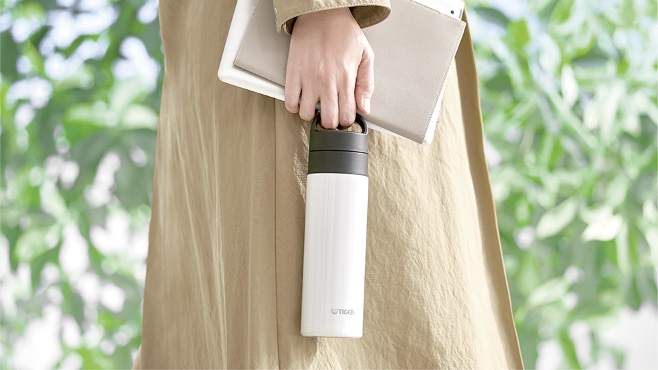 持ち運びも便利だ。傾斜がついたハンドルが手にフィット。さらに、軽くてかばんにもすっぽり収まり、飲みたい時にスッと手に取れるサイズ感になっている。