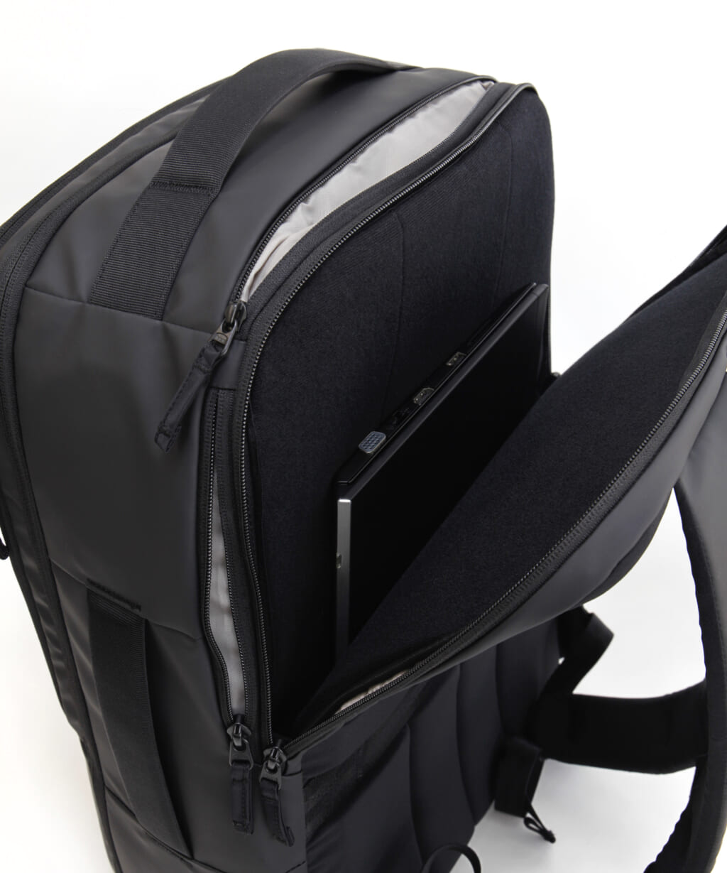 “OVER NIGHT 30(オーバー ナイト 30)”は、ビジネス出張に十分な収納力と使いこなしやすさを実現。背面には大容量のPCスリーブがあり、ショルダーハーネスは10mmのスポンジ入なので、背負い心地も快適。ボトルホールも新たにデザインされ、素早い水分補給ができます。