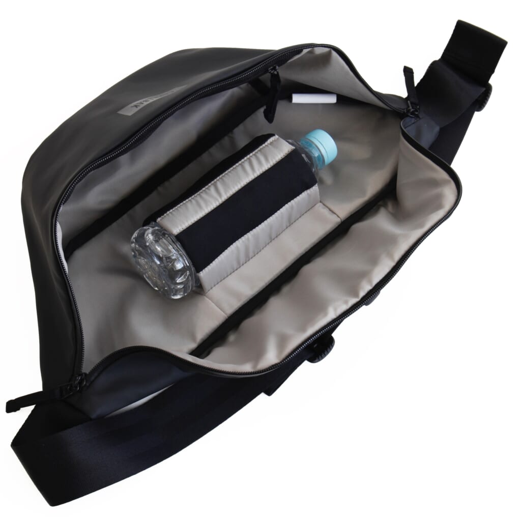 “BOTTLE SHELTER FANNY PACK(ボトル シェルター ファニー パック)”は、体にフィットするボディバックタイプ。止水ファスナーが内部を守りつつ、ボトルホールとセキュリティーポケットを装備しています。