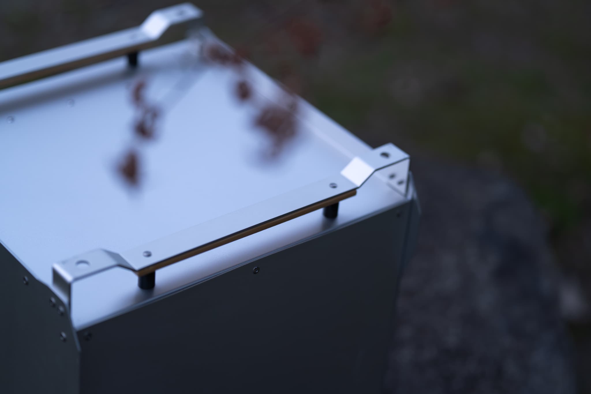 ニミットセラーを持ってキャンプ場に現れたら、誰か出前を頼んだのかと思われるくらいインパクトのあるルックス。持ち手以外は全身メタリックなので、インダストリアルな雰囲気も漂っている。ガレージや魅せる収納ルームではインテリアとしても活躍してくれそうだ。