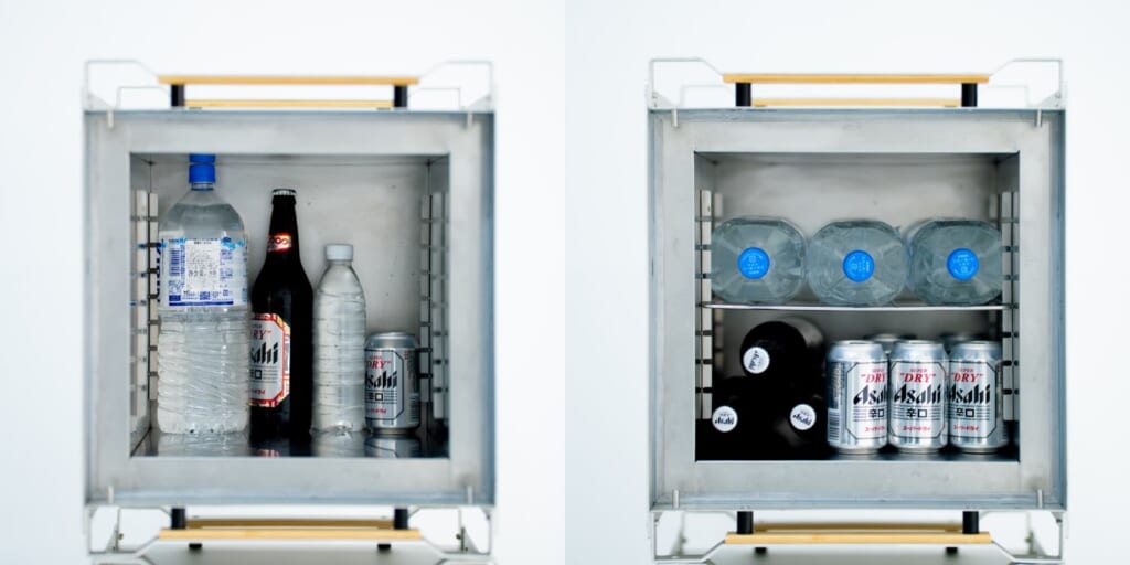 板金パネルを組み合わせたシンプルで無駄のない構造は、保冷スペースを見れば一目瞭然。一般的なクーラーと違い傾斜がないため、デッドスペースが生まれないよう設計されている。