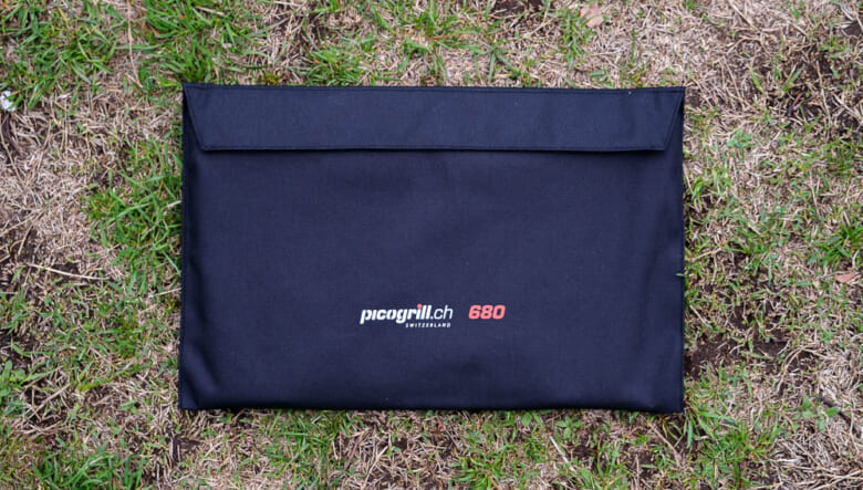 収納時の厚さはわずか7mm。これは付属のグリル網を含めた厚さで、驚異的な薄さで持ち運べる。収納袋も含めた総重量は約730gだ。