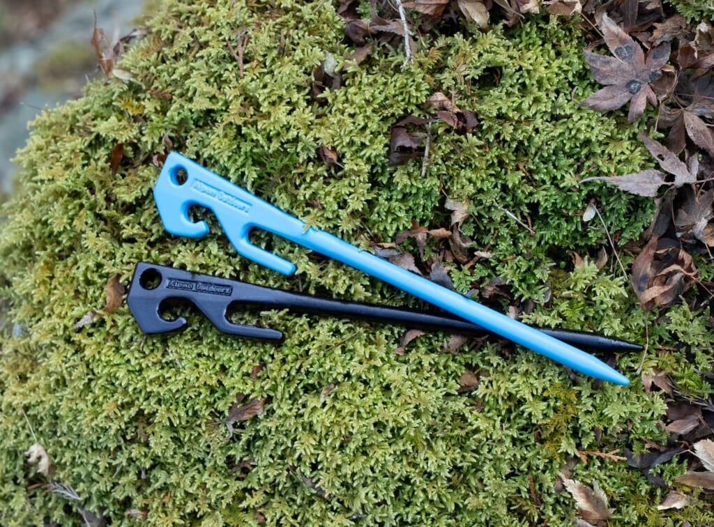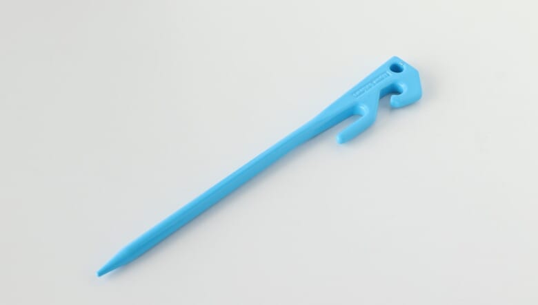 最後に紹介するのは、何本あっても困らない“ペグ”。従来の鍛造ペグ(ブラック)に限定色のブルーが追加された。ブルーと言っても濃色ではなく、アルペン旗艦店のシンボルカラーからインスパイアされた鮮やかな色味で非常に目立つからペグの位置がわかりやすく、足を引っかけたりペグをなくす心配もナシ!