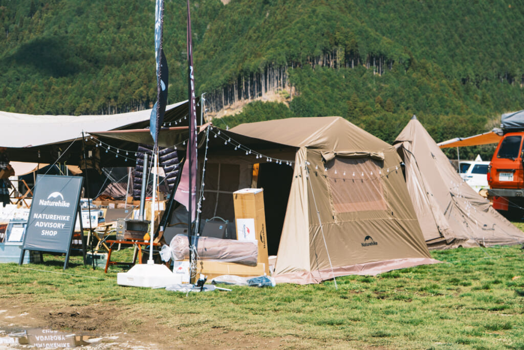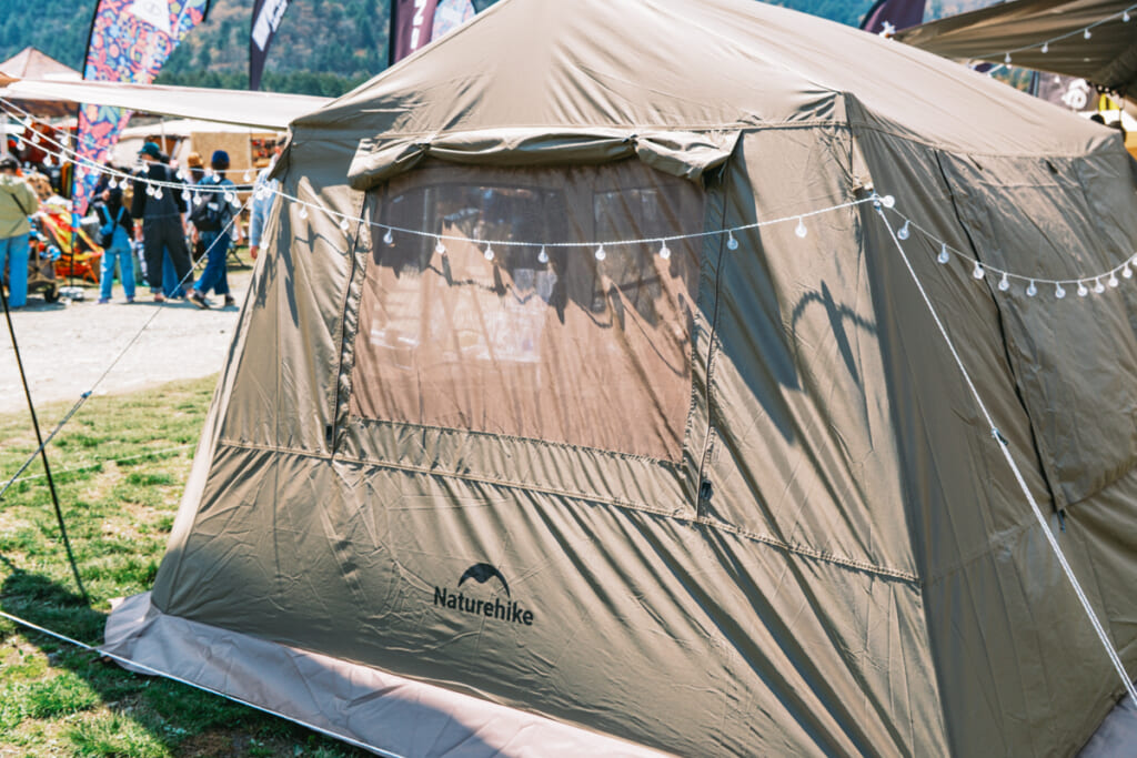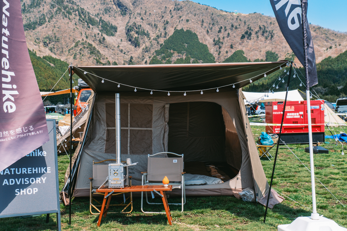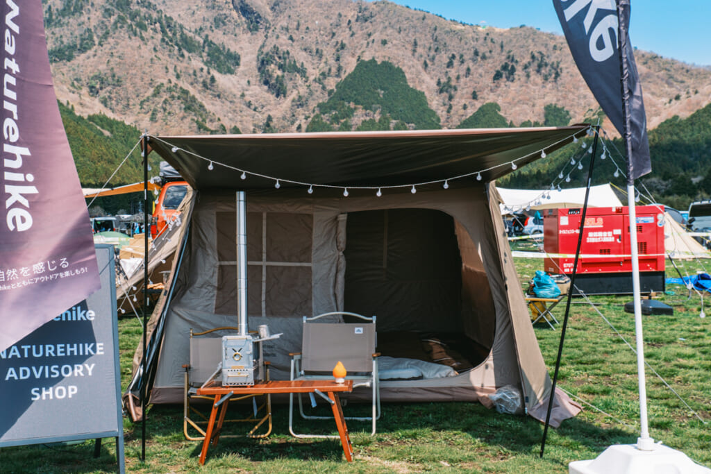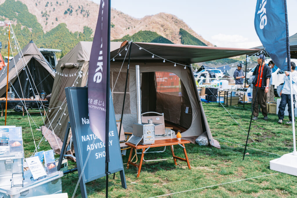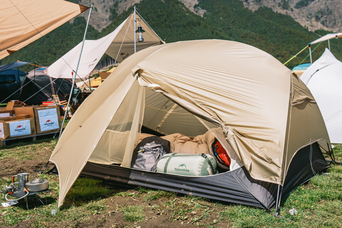そんなネイチャーハイクブースで、ファミリーキャンプ、ソロ・デュオキャンプにちょうどよさそうなテントを発見! それぞれ細かくチェックしていこう。