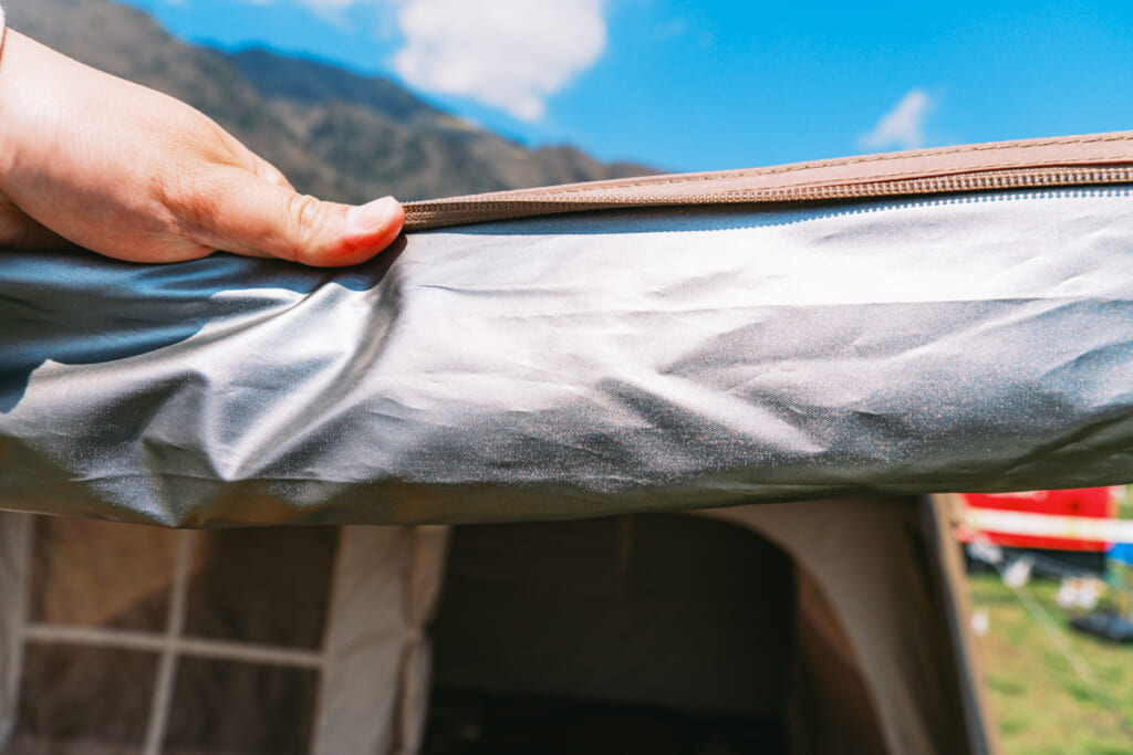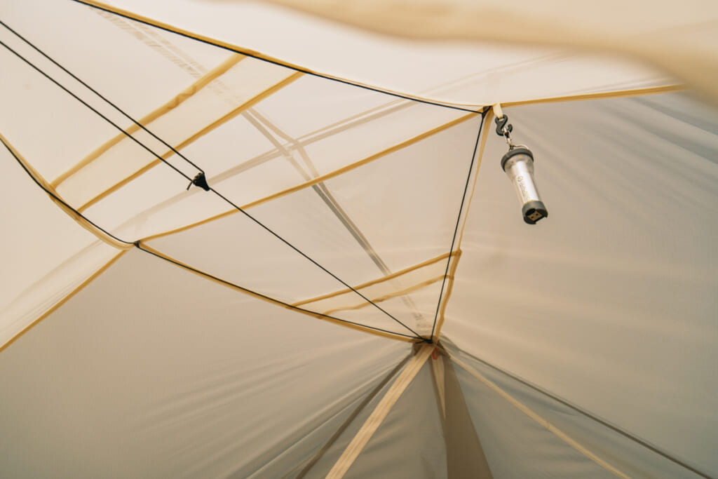 さらに、インナーの天井にはテンションロープが張られていて、これを緩めると強風時の力を逃がせるという仕組み。しかも、物干しとしても使えるというから、一石二鳥。
