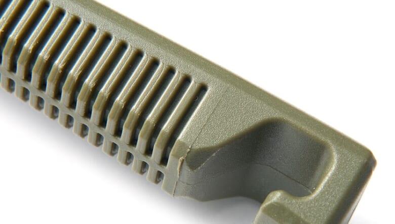 タイヤハウス内にもアプローチしやすい角度付きのグリップはテクスチャー加工によって滑りにくいのが特徴。エンド部分はフック形状だから吊り下げて乾燥、保管ができる。