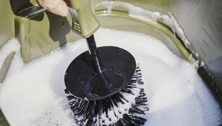 スポンジや洗車機などでは落としきれないブレーキダストやオイル汚れもガシガシ落とせるぞ。こちらは傷がつきにくいソフトな合成毛を用い、密集させることで洗浄剤の泡立ちもバッチリ!