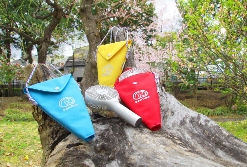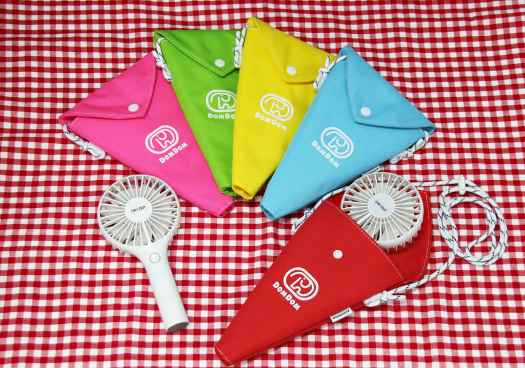 フラッグにも見える三角形型ケースは“ハンディファン入れるやつ”。毎夏定番と化した小型ファンをクレープに見立てて持ち運べるのだ。