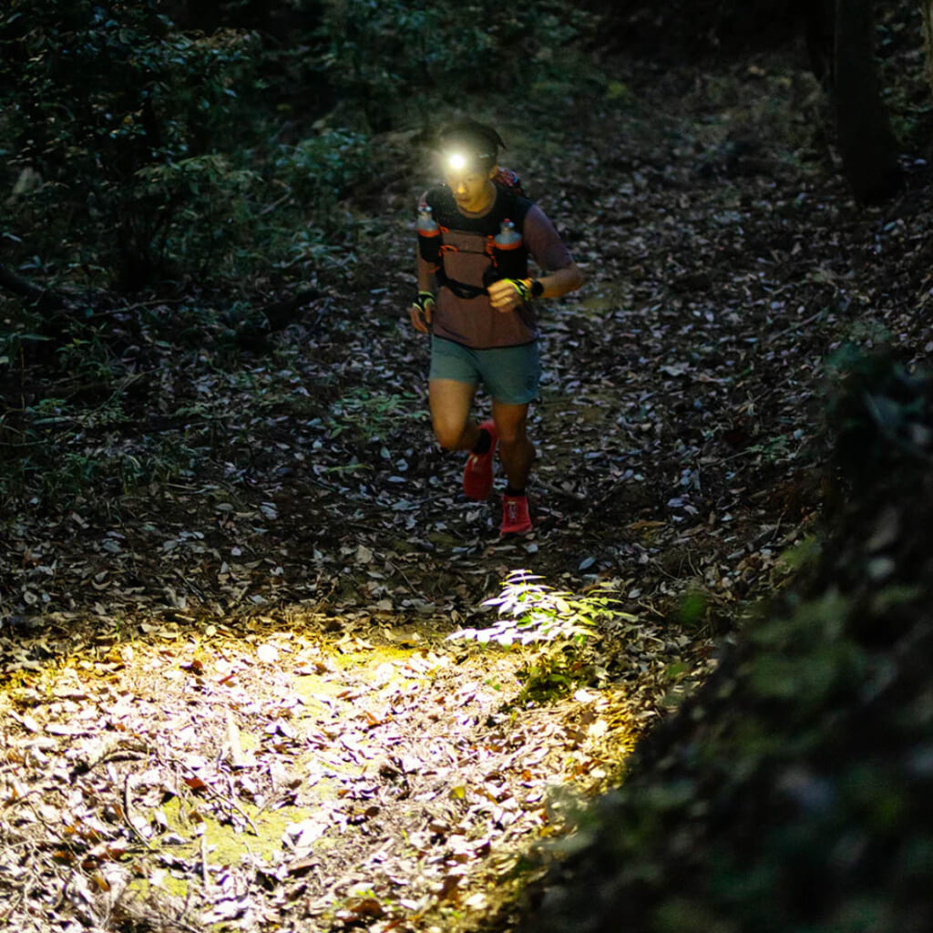 そして最後がバッテリーを縦に配置することで走行中の揺れを最小限に抑える縦型マウントヘッドバンド。この縦型マウントヘッドバンドは、「NEO10R」でトレイルランナーから高い評価を得た革新的な装着システムだ。