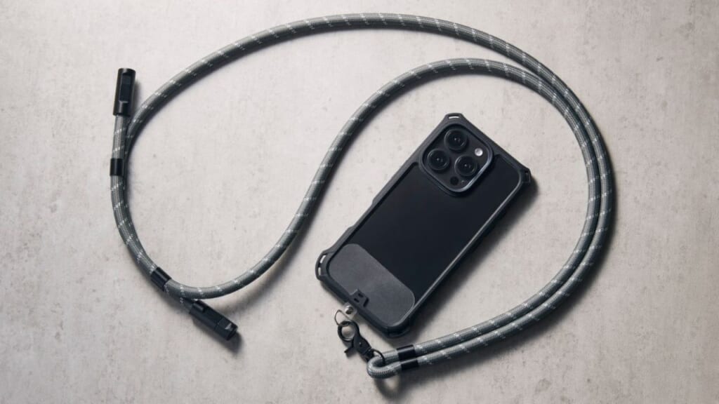 “充電ケーブルショルダーストラップ”は肩掛けできる長さ&直径8mmの太めの丸ひも仕様。バッグやポケットからスマホを出すたびに思わず落としそうになったことのある人にはうってつけです。こちらもUSB Type-Cに対応し、最大60Wの送電が可能です。