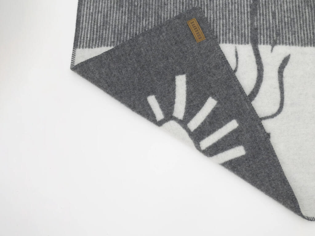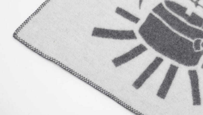 素材にはミュールジングフリーの100%ラムウールを使用して、アウトドアでも使えるタフさと温かさを実現。ひざ掛けとしてはもちろん、キャンプではラグやマットとしても活用できる。汚れた場合はドライクリーニングのみ対応なのでご注意を!