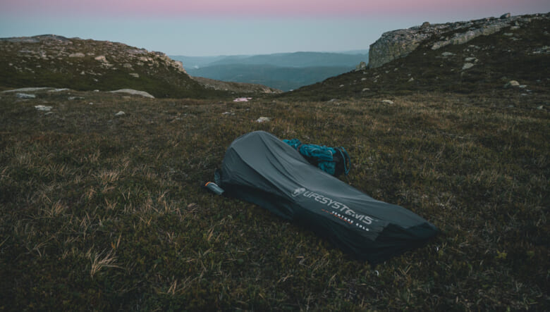 まず“ビヴィ”とは、寝袋のような形状のテントのこと。軽量で手早く設営でき、自然をダイレクトに感じられることから“ビヴィ”泊の愛好家も多い。