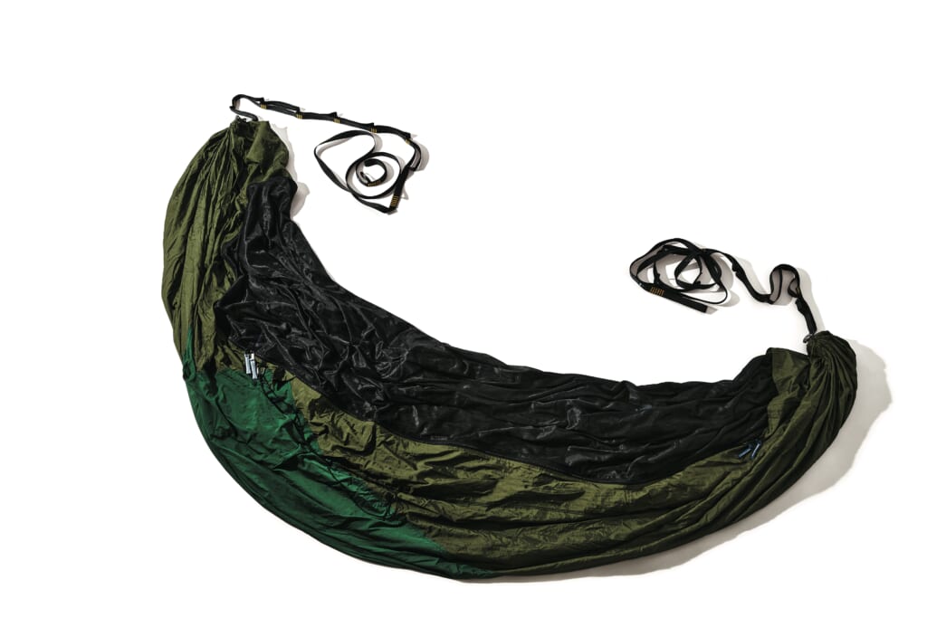 優れた耐久性、通気性、速乾性、防カビ、耐腐食性を備えた最高品質のパラシュート生地で作られているのが特徴で、今回は今年リリースしたばかりの新型をピックアップ。マットレスとの併用を前提に設計された新モデルは、便利なリッジラインやバグネットを装備し、断熱性に優れ、寝心地はバツグン。これを機にハンモックデビューしてみてはいかが。