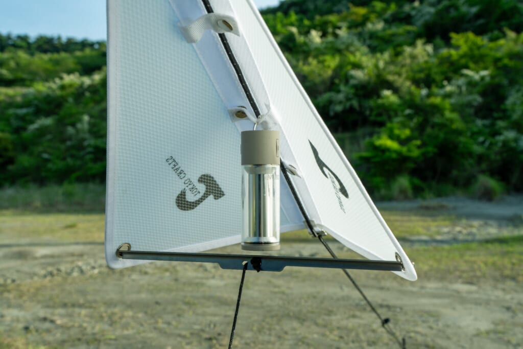 別途LEDランタンが必要だったり、ガイロープへの設置はフレームを差し込んだりペグダウンしたりと、他のアイテムより少し手間はかかるが、その分存在感はバツグン。LEDランタンを雨から守りつつ、本体自体も蓄光機能があるので消灯後も安全性を保ってくれる。