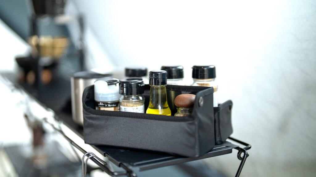 キャンプのいちばんの楽しみと言っても過言ではない料理。こだわりの外飯に必須のスパイス類を収納する新発想のケースも登場。ボックスの中にピッタリと収まったスパイススタンドは、スパイスを入れたまま取り出しが可能。