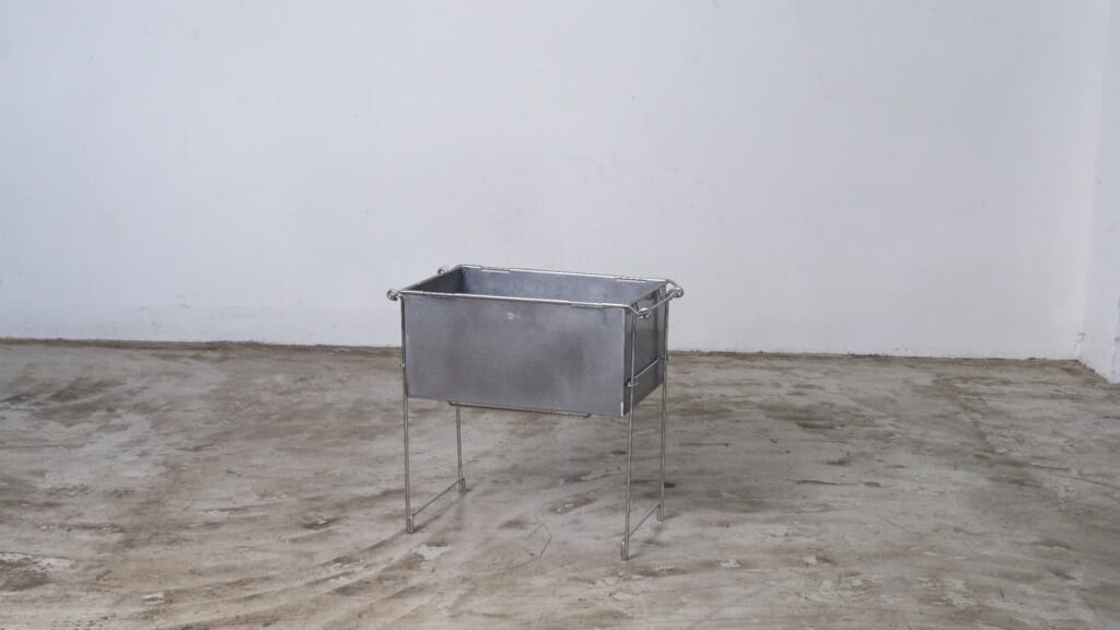 焚き火周りやキッチン周りのギアを入れるのにもってこいの小型のコンテナは、ハンドルやスタッキングフレームとなる脚で自立するのが特徴。持ち運びもしやすく利便性に富んでいるが、コードユニットと同じくメタリックな雰囲気がとにかく男心をくすぐるアイテムだ。