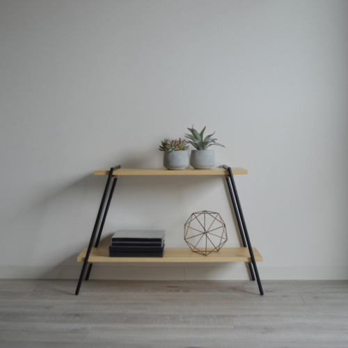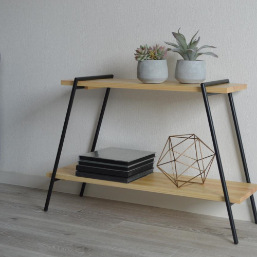 屈強なアイアンパイプの脚に、パインウッドの棚を差し込むだけで設置できる簡単設計。それだけにフィールドに持ち出しやすく、収納棚としてリビングでもキャンプでも大活躍。