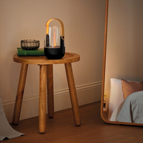 こちらは自宅で愛用しているアロマが外でも楽しめそうな、ハンドル付きのポータブルタイプ。揺らめく炎をイメージした演出により、香りだけでなく目でも楽しめて空間をムーディに演出。