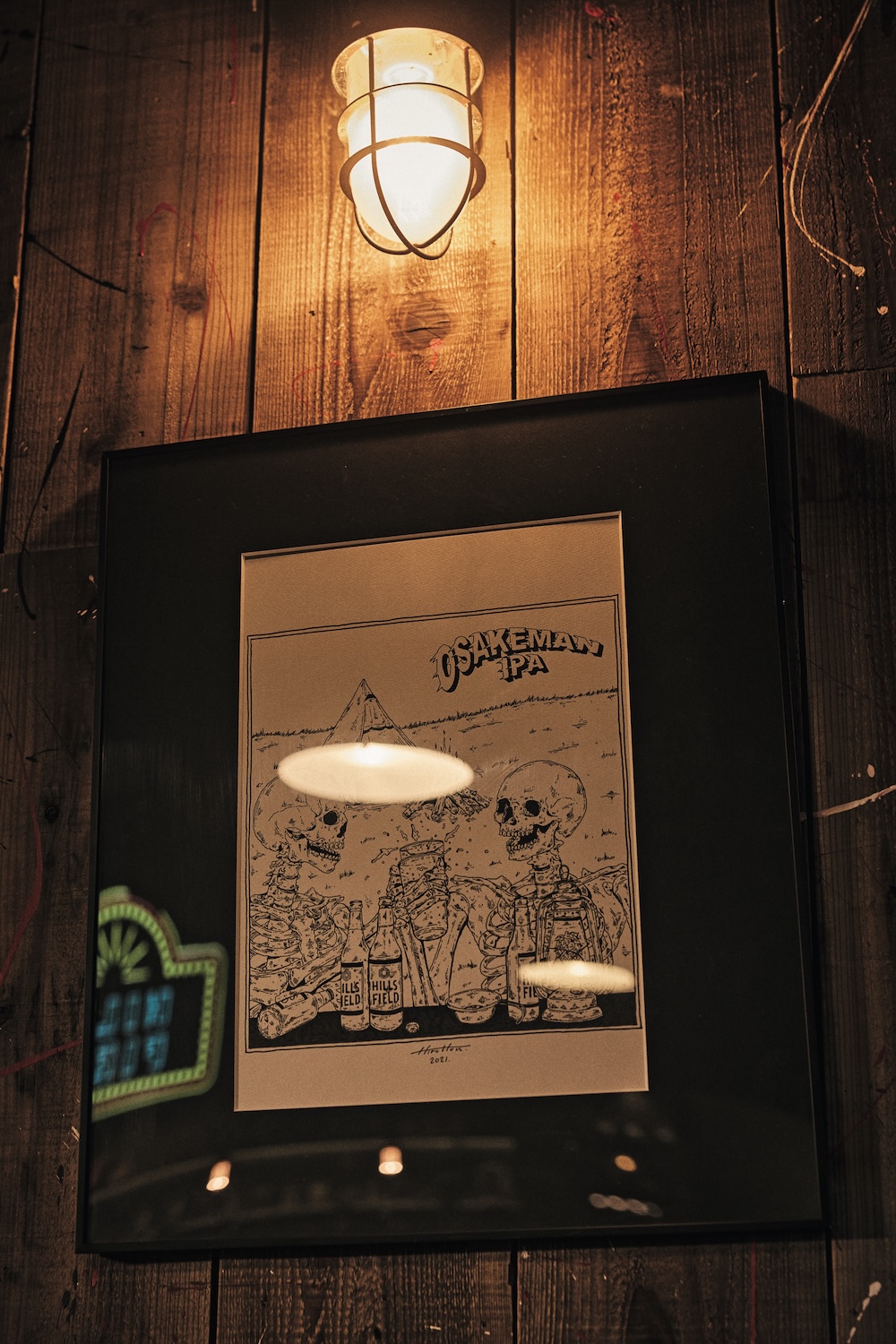 オリジナルパイントグラス 各480mL(右から、DRINK OR DIE、HILLS FIELD NAME、キャンプぁい、OSAKEMAN) 各¥2780~3180、虎レモンサワーグラス 435mL ¥2780、OSAKEMANミニグラス 180mL ¥2280