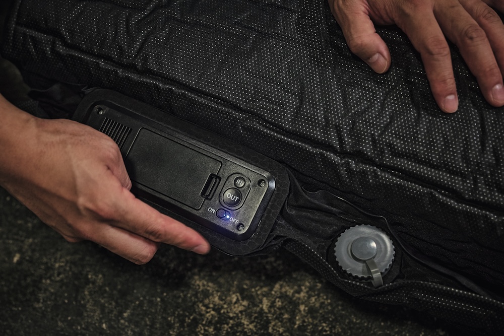 ボタンひとつで設営&撤収! エアポンプ内蔵型マット。