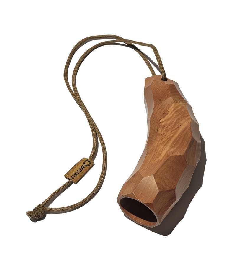 職人が手作業で作る、リグロウッドワークスの木製カップを大きめサイズ(約50cc)で別注。首からぶら下げて持ち運び、飲み切るまで置くことはできないのが面白い。