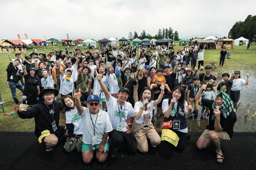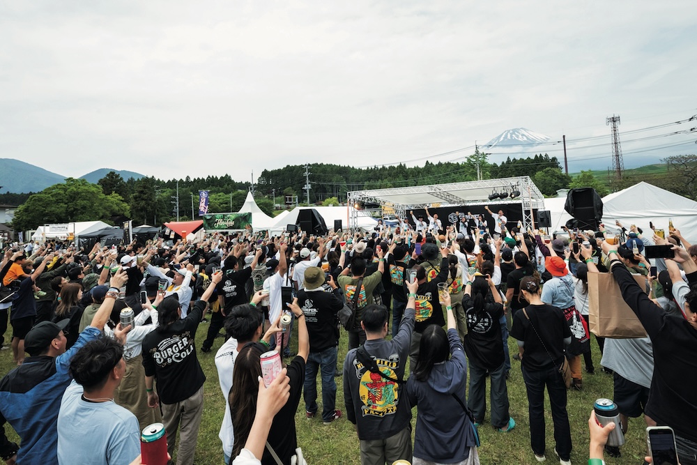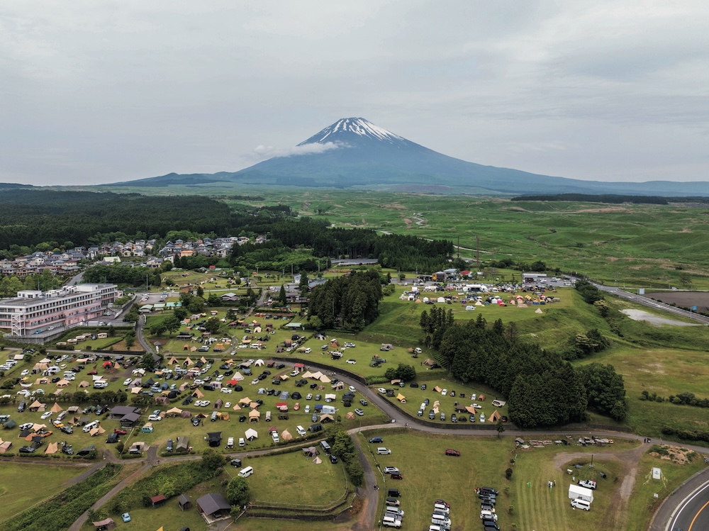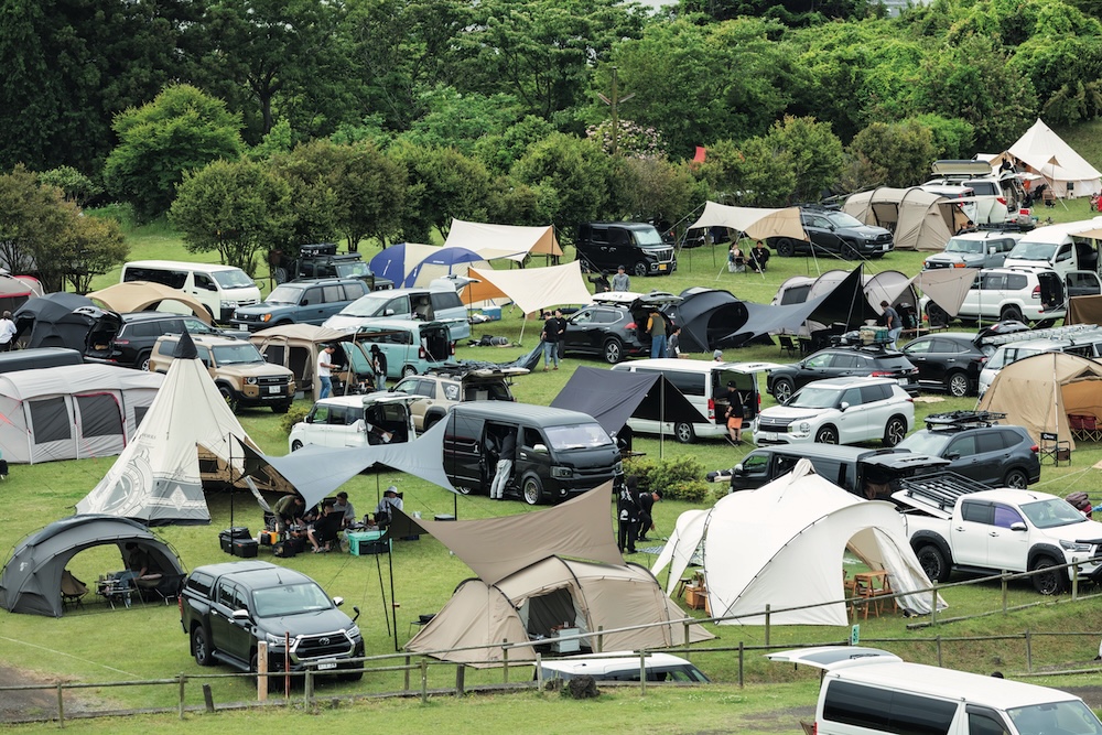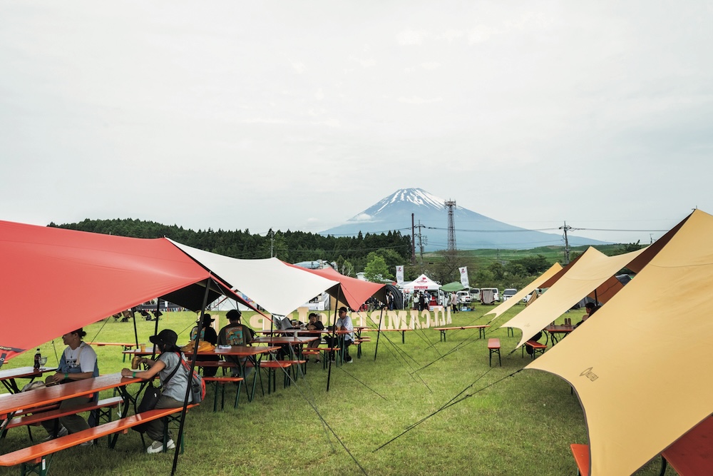 コロナ禍にSNSのクラブハウスをとおして出会った仲間と飲んでいるときに“地元の静岡で日本一のキャンプフェスをやりたい”なんて話をしていたことがきっかけでスタートしたという「オールキャンパーズジャパン」。会場は、静岡県裾野市にある大野路ファミリーキャンプ場。富士山の麓で絶景を望める開放的なロケーションの下、お酒好きの心と肝臓を満たす出店、音楽、フード、マーケットといったさまざまなコンテンツを用意。