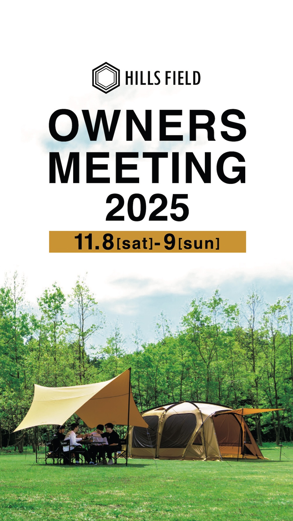 気候もベストな秋のキャンプシーズンに、ブランド初となるオーナーズミーティングの開催が決定。日程は11月8日(土) 、9日(日)の2日間。場所や内容などの詳細についてはまだ発表されていないが、ヒルズフィールドの製品を持っているオーナー向けのイベントとなる。
