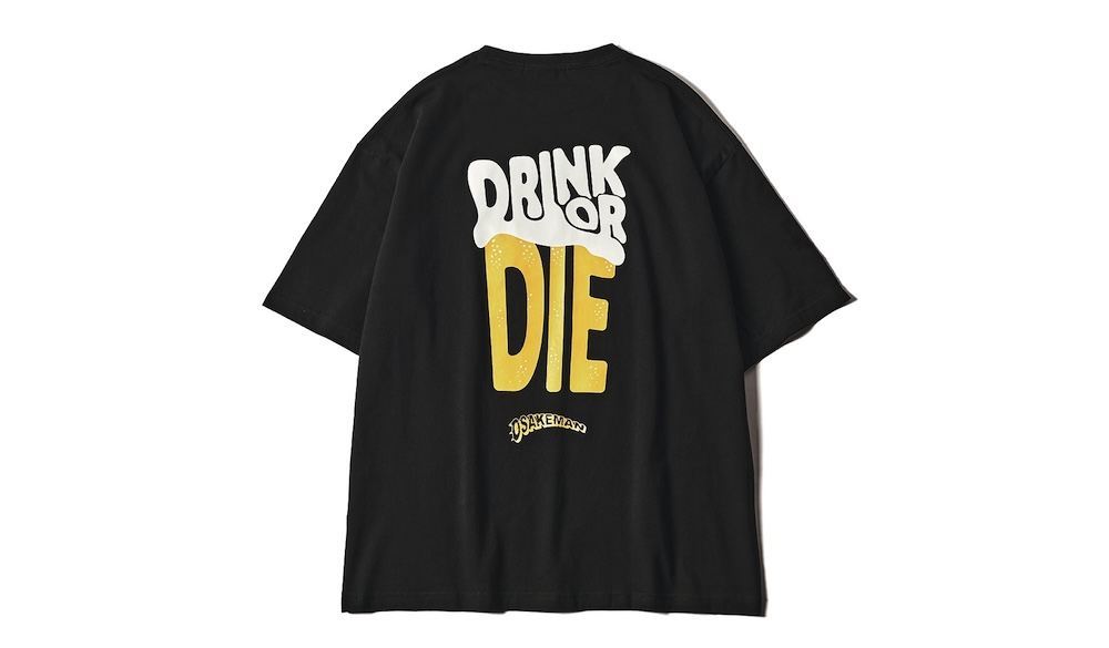 背中にはキャンプとお酒を愛するヒルズフィールドらしい“飲むか死ぬか”のメッセージをプリント。同デザインでロングスリーブTシャツも展開。