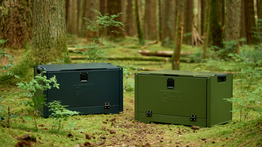 代表作である「Chuk Kitchen Box(チャックキッチンボックス)」は、写真のように、ツーバーナーがちょうど設置できるスペースと、サイドに調理台を備える。