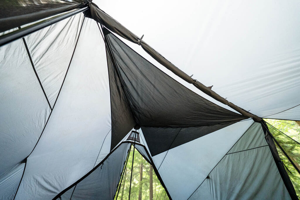 「オブセル インナールーフ」は、日差しを防いだり、結露の滴りを防止する役割のインナールーフ。ハンギングベルトと併用できるので、ランタンなども掛けられる。