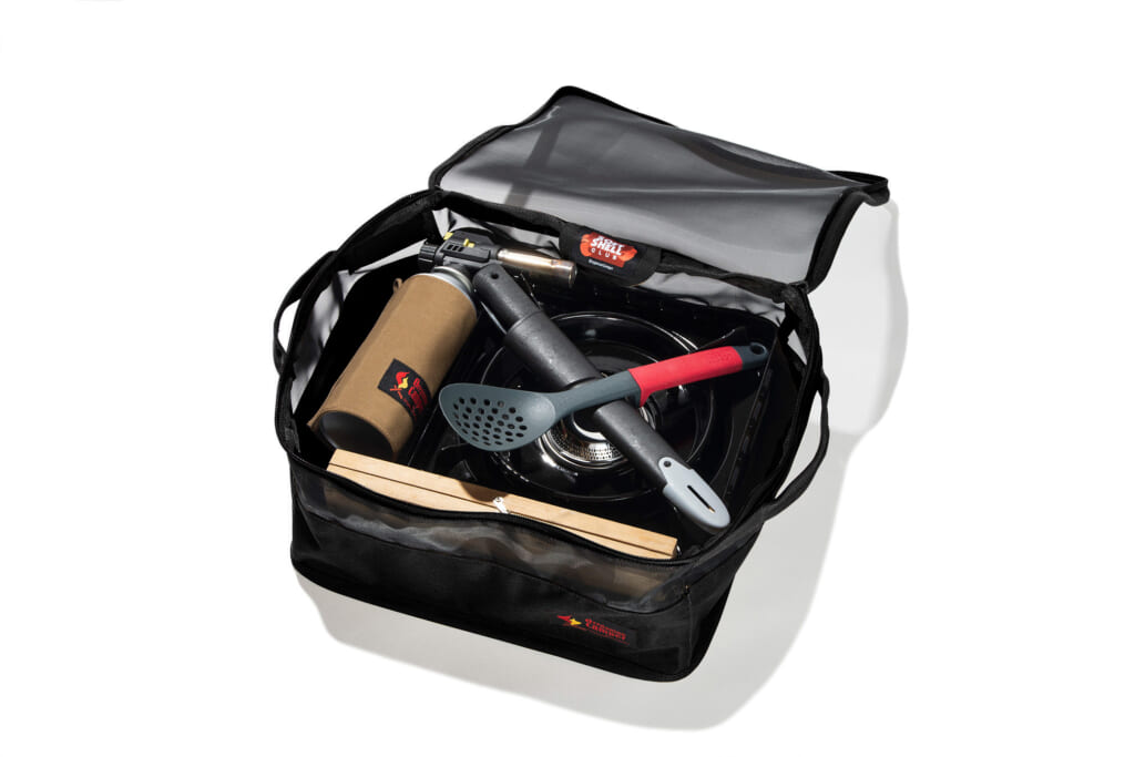 本シリーズで最大となるサイズ“5”は、幅で36.5cm、奥行き33.5cmそして高さが18cmと、小型のコンロがすっぽり入る。その上、カップなどの食器類までまとめて収納可能できちゃいます。