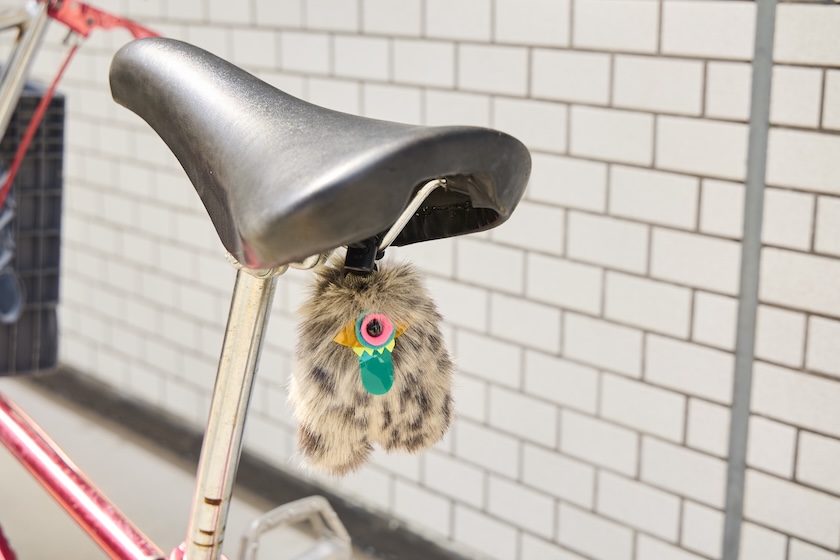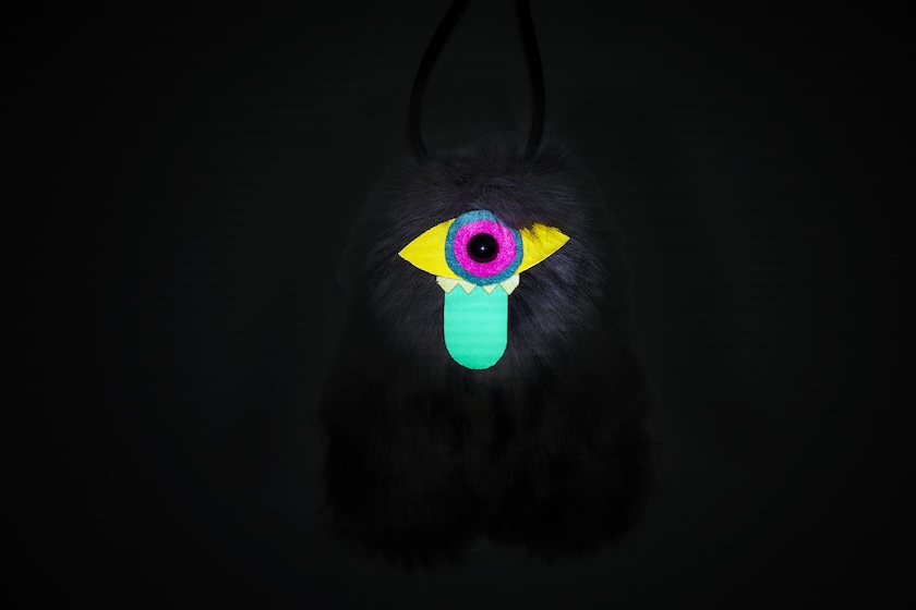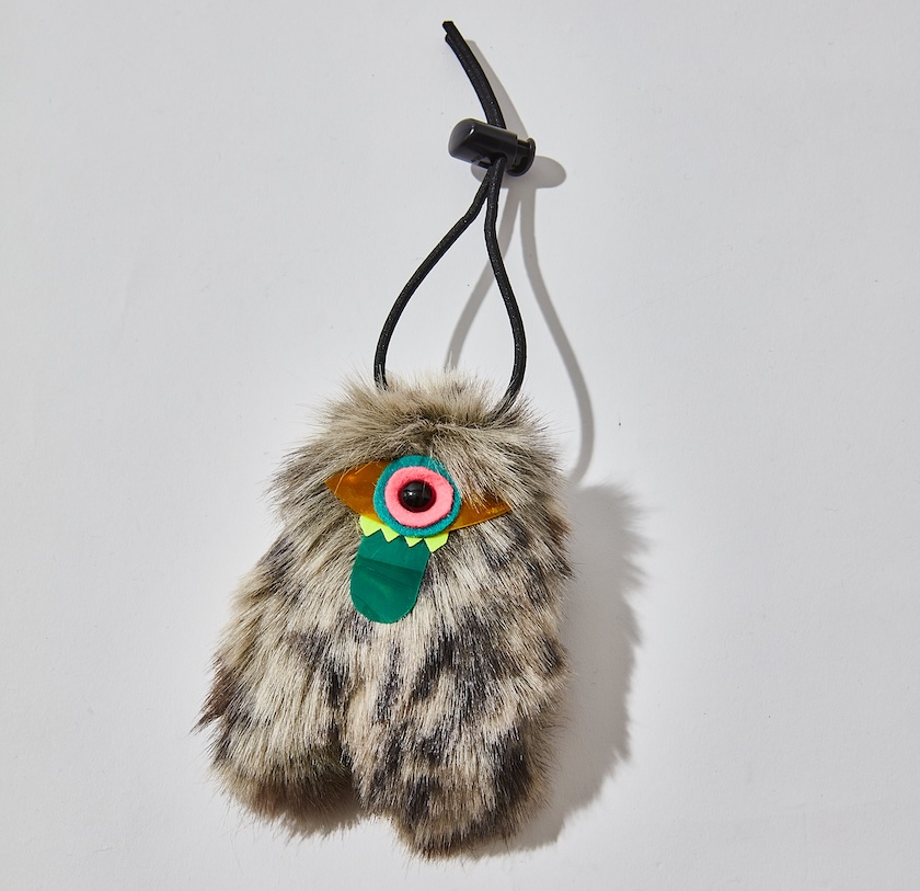 毛足の長いファーを大胆に落とし込み、フワフワとした可愛いモンスター。実はぬいぐるみではなく、モデル名から想像できるように、リフレクターと、熊鈴として使える実用性に優れたプロダクトです。