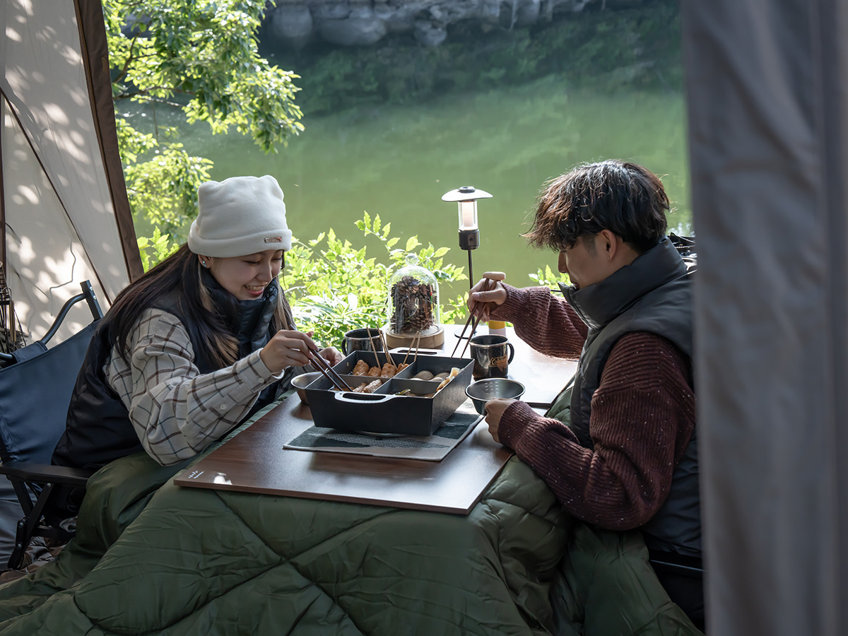そんな中、「Alpen Outdoors(アルペンアウトドアーズ)」では、冬キャンプをより快適に楽しみたいというニーズに応えるべく、日本ならではの“こたつ”文化をアウトドアに取り入れた「こたつユニット」を展開中。
