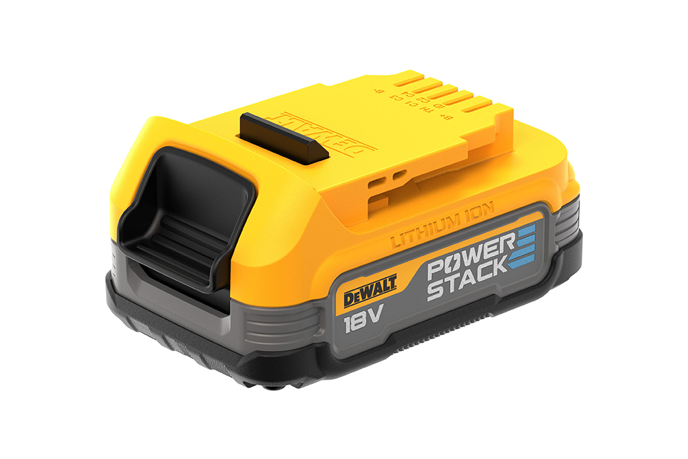 セットに付属するバッテリーは「POWERSTACK」シリーズ。工具メーカーとしては初めて採用した、パウチ型のリチウムイオン電池セルを内蔵している(従来は円柱型)。これにより発熱を低減しつつ、長寿命で愛用できる。