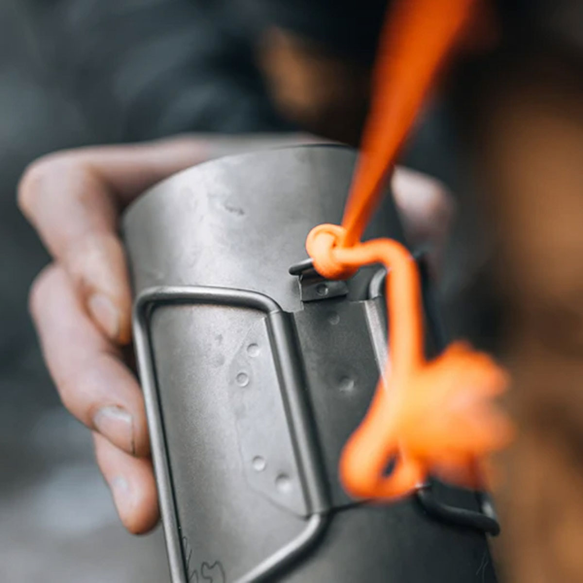 また、折りたたみできるチタン製バタフライハンドルとチタン製Dカン付きで、Dカンにパラコードを通せば、降りていけない水場にもアプローチできる。