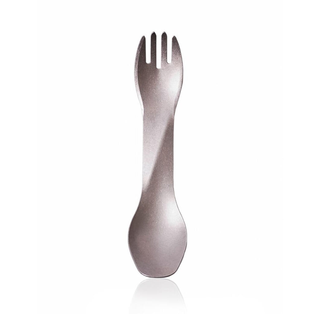 スプーンとフォークが両端に付いて、持ちやすさと使いやすさにこだわった一体型カトラリー「ゴーバイト UNO」のチタンバージョンが「ゴーバイト チタン UNO」。非常に丈夫で熱に強い特殊高強度チタン素材を使用していて、従来モデルがナイロン製の15gなのに対して、チタンモデルは25g。重量では重くなっているものの、その分、耐熱温度は204度と熱に強く、チタンなので着色や匂いもつきにくく、お手入れも簡単。長く愛用できる一生モノのカトラリーになっている。