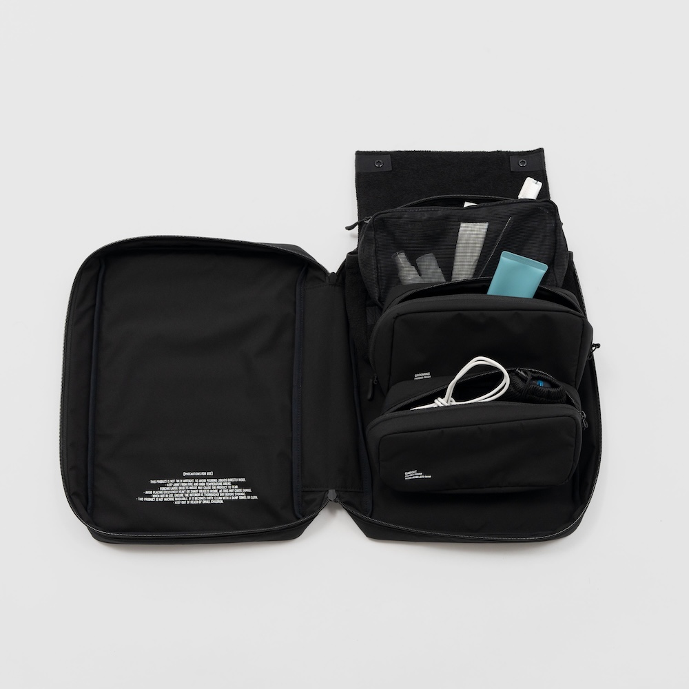 アメニティなどをまとめるトラベルオーガナイザーは、シャワー、グルーミング、ガジェットと用途の違う3つの独立したポーチを搭載しています。