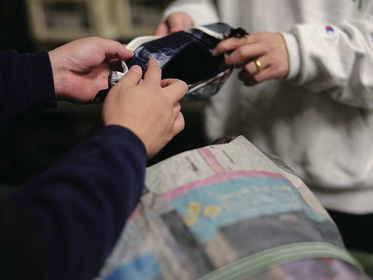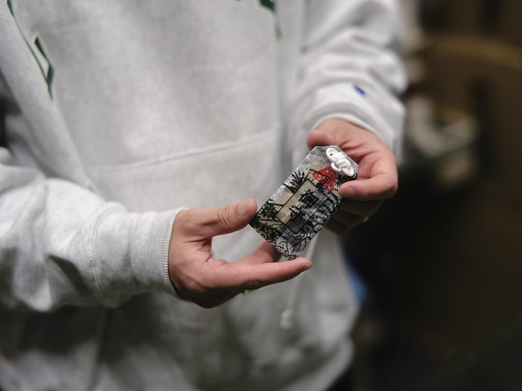 上出:ほんとに苦労かけてる。御守りも作った。中に縫い針と糸と補修用の生地が入っていて、本当に持ってると有難い御守り。マップが入れられる大きい御守りもある。御守りで我々は今後メシを食おうと思っています(笑)。