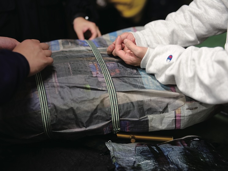 茂夫:洋服とかを入れると枕にもなるし、敷けば雪にも座れるしね。