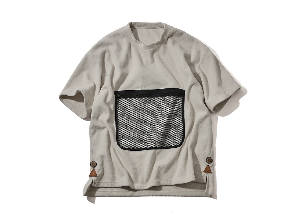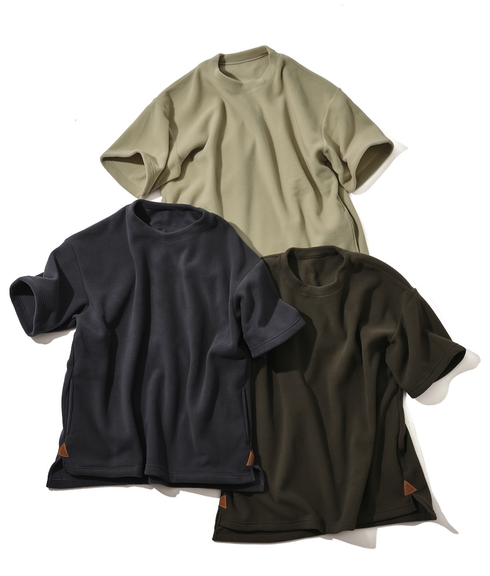 フリースなのにあえて半袖に。機能と無縁のアイテムのようにも思えるが、XL相当ワンサイズのオーバーサイズだから、アウターにもインナーにもなり、快適な着心地で着まわし自在な逸品。