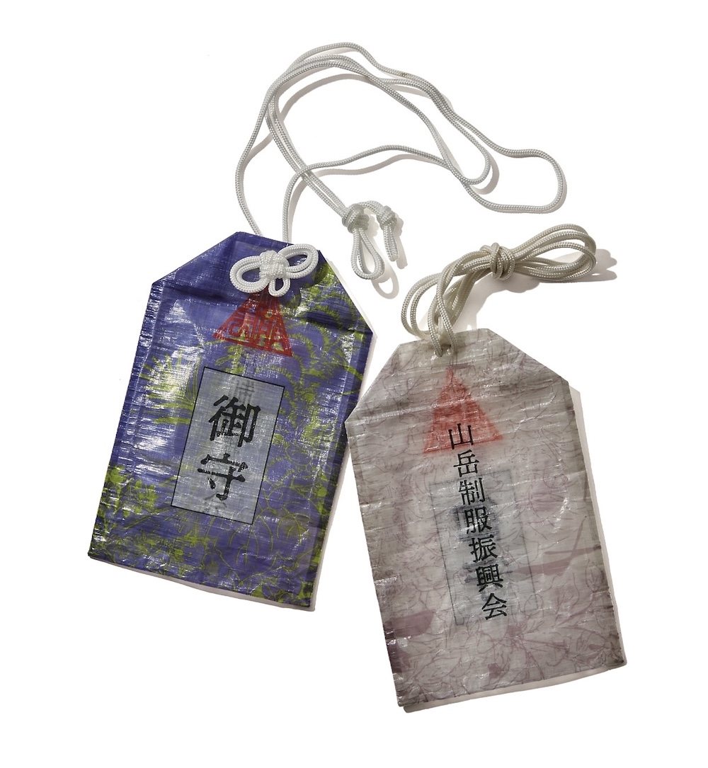 DCF製の大型御守り。ちなみに柄は熱で気化させたインクを繊維に染み込ませる昇華プリントを用いている。軽量で防水性もあるうえ、強度もあるから、小物を入れるポーチとしても使える。